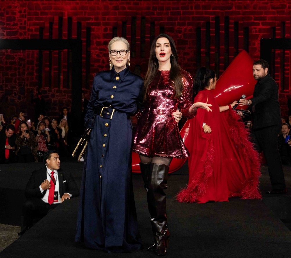 La llegada conjunta de Meryl Streep y Anne Hathaway fue, sin exagerar, un momento coreografiado con precisión: complicidad, elegancia y una narrativa visual que evocaba la esencia misma de la saga.