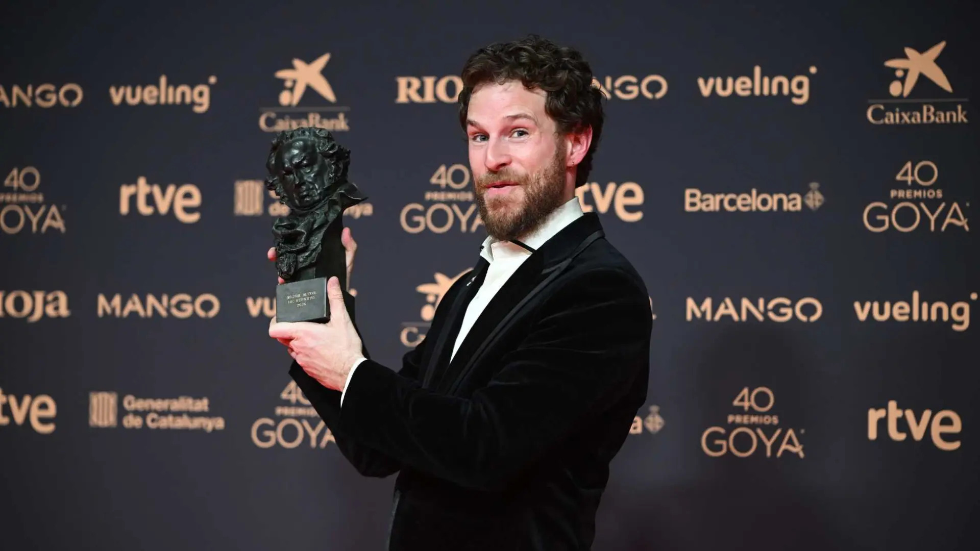 Alvaro de Cervantes recibe la estatuilla a mejor actor / Getty Images.